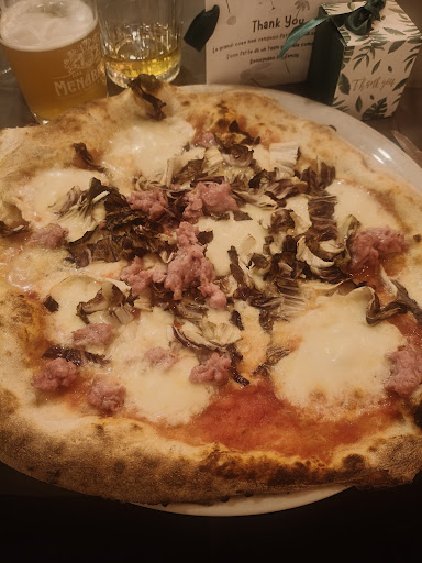 Siamo molto dispiaciuti di lasciare una recensione negativa a dispetto di una buona pizza. Tuttavia riteniamo che il mancato rispetto delle norme igieniche in vigore abbia la priorità su tutto il resto: i clienti si muovono liberamente all’interno del locale senza mascherina, le cameriere portano la mascherina abbassata sotto il mento e non rispettano la distanza (parlando a 20cm dal viso del cliente, senza indossare la suddetta mascherina e arrivando a dire “Se avete paura statevene a casa vostra”).