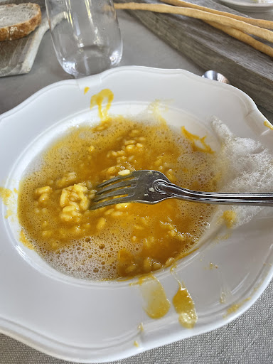 Read moreTo start -The English menu was awkwardly worded with many grammatical errors -The ‘risotto’ if we can even call it that was rank: I was hoping to taste the horseradish and have half a dozen shrimp : like their website picture -one shrimp cut into quarters , vinegar added : ‘ to counteract the horseradish taste ‘ ?!? SWIMMING in a weird broth NOT RISOTTO- CALL IT SOMETHING ELSE- it was topped with a weird white foam that resembled what my dog brings up when he is finished vomiting - so much vinegar added - inedible - was also hoping for an outside seat with a view - even with a reservation put into a corner of their past barn : the servers were kind and was offered a bottle of ‘condolences’: - still paid for the risotto though - they should stick to...