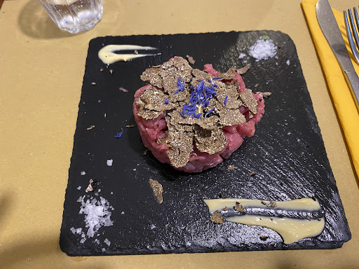 Read moreChe bella serata! Abbiamo mangiato in questa piccola trattoria, un gioiellino. Il piatti sono una fusione tra il tradizionale e il moderno. Il team è giovane e ha voglia di fare. L’antipasto di picaña con sale, pepe cipolle caramellate e salsa tonnata è qualcosa di indescrivibile. L’antipasto degustazione è grandioso! Di primo abbiamo preso gli gnocchi al chiaro di gamberi e zucchine con pistacchio salato. Che dire, li mangiavamo ad occhi spalancati da quanto erano buoni. Senza parlare del risotto con foglie di lardo, una bontà. Il secondo, il polpo saltato con patate, carciofi Salsa caccio e pepe era mondiale! Inoltre a gli amanti della trippa non basterà solamente...