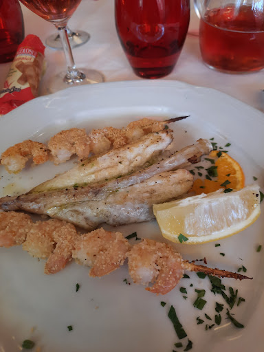 Bel ristorante non grandissimo ma bello. Per il mangiare sono stato abbastanza sodisfatto , tutto buono , forse gli spaghetti allo scoglio me li aspettavo più buoni , il risotto ai frutti di mare buono , il fritto misto buonissimo non pesante e unto . Antipasti misti a buffet come le verdure a buffet. Prezzo per quello che ho mangiato direi giustissimo. Antipasto a buffet , assaggio 2 primi con bis di uno dei due , un secondo fritto misto un dolce verdure a buffet , dolce e caffè un litro di vino e un litro di acqua, amaro offerto dalla casa ho speso 30 euro....