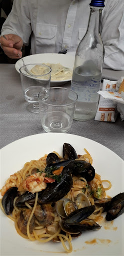 Read moreÈ difficile che io mi lamento ma se devo pagare 106/105 con sconto di un euro si dovrebbe mangiare bene.Invece cozze con pomodoro immerso nell’Acqua con piccante al massimo piene di olio, spaghetti alle vongole tanto olio e niente prezzemolo buttati in un piatto.I piatti per le bucce macchiati di nero ,i ravioli di pesce buoni,peccato che i frutti di mare erano molli perché congelati,si sono salvati i gamberoni di mia figlia,servizio freddo, per pulire le mani di pesce solo una salvietta imbevuta per tre persone ,i camerieri ti domandano se hai bisogno devi chiedere tu, io faccio questo lavoro da anni ,e bisogna farlo con amore.lo chef non cura i piatti,non mette gli aromi essenziali per la riuscita di un buon piatto.Mio marito e chef e stasera abbiamo visto una cucina buttata lì così peccato.Punto molto brutto il lampadario con calici appesi pieni di polvere !!!!!non è il massimo.Buon...