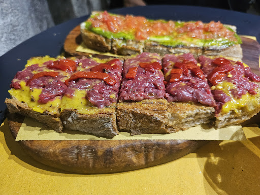 Read moreDopo un po' di tempo che non andavo, sono tornato in questo locale, che dire... non farò sicuramente passare lo stesso tempo prima di ritornarci! Il locale non è molto grande ma suggestivo, soprattutto la parte sotto il livello della strada con i muri storici a vista. Il personale è gentile e accogliente. I prodotti utilizzati per condire le bruschette sono di qualità. Abbiamo iniziato con un aperitivo che consiste in una bruschetta divisa in tre parti, aglio e olio, pesto e pomodoro, ottima per iniziare con i sapori classici. Poi abbiamo continuato con una fassona con stracciatella, pesto di peperone giallo e battuta di fassona... squisita, una con gorgonzola e mostarda, personalmente ero scettico ma mi sono dovuto ricredere, buonissima, una con stracciatella, gamberi, pomodorini confit e olive taggiasche, anche questa deliziosa, una classica al pesto e dulcis in fundo la bruschetta alla Nutella... A tutto ciò si accompagna una vasta scelta di birre, vini e succhi. Tutto buonissimo! Che dire, locale...