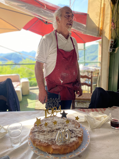 Read moreSi mangia tanto e a buon prezzo ... Pranzo domenicale con mia moglie nella rusticissima veranda di questa trattoria di campagna alla periferia collinare di Genova . Locale pieno e servizio non velocissimo ma calmo . Abbiamo cominciato all' una e terminato alle 15,30 passate ... C'è da dire che le portate sono moltissime : ci hanno servito 6 o 7 antipasti ( buoni , ma meglio quelli di terra ) , 3 assaggi di primi ( pasta fresca con vari condimenti ) e 3 secondi ( carpaccio , coniglio e maiale ) . Per di più non disdegnano un secondo passaggio ! Infine dolce a scelta tra 4 , caffè e amaro . Tutto mediamente buono e spesa finale 27,50 euro a testa . Cameriera veloce e gentile , cameriere simpaticamente chiacchierone e scherzoso . Toilette piccola ma in ordine . Difficoltà a trovare parcheggio , alla fine si posteggia lungo la Provinciale . Ristorante senz'altro...
