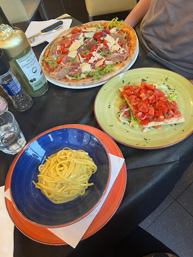 La cuisine était absolument délicieuse, un véritable régal pour les papilles. Mais ce qui nous a le plus surpris, ce sont les portions : elles sont tout simplement impressionnantes, presque ingénieusement généreuses. Une pizza gigantesque, un verre de Prosecco énorme — tout était plusieurs fois plus grand que la norme. Le rapport qualité-prix est exceptionnel.