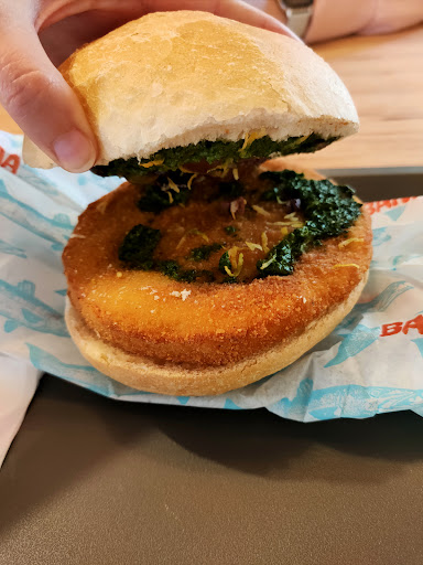 CIBO: abbiamo provato il fritto di calamari e il panino Prà , tutto molto buono ! Ho il sospetto che nel panino il pesto fosse artigianale data la nota amara che ogni tanto si sentiva, sicuro non quello di Prà XD ( Rimane una nota di merito ma ci darei maggior occhio in futuro ) Un consiglio se permettete, date qualche fettina di limone in più se è gradita !