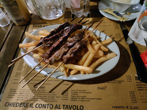 Read moreCercherò di essere il più oggettivo possibile. Cibo di buona qualità, con tempi forse un po' lunghi di servizio, ma forse solo nel mio caso specifico. Servizio cortese ma un pochino smemorato, ma ci sta sono giovani. Quindi in base a ciò detto sopra avrei dato 4 stelle più che oneste; peccato che per una "birreria" i prezzi siano totalmente fuori mercato, per questo motivo le stelle diventano due sole. Nel dettaglio: ravioli al ragù 15€ ma soprattutto 6 dico 6 arrosticini su un letto di patate fritte (vedi foto, manca un arrosticino solo perché già mangiato) 15€, è davvero troppo. Soprattutto perché fino a poco tempo fa erano offerti 10 arrosticini a 10€. Anche perché per prezzi così elevati, si ci aspetta sistemazioni adeguate, ma se il coperto è costituito da tavoli sgangherati e tovagliette di carta, non credo sia il caso. Inoltre, su tutte le lavagne si pubblicizza una birra che poi alla richiesta non c'è (Ichnusa ambrata per la precisione) e sempre per il concetto che si tratta di una birreria, risulta un pochino disallineato. Oltre al fatto che una media italiana a 7€ lo trovo oltremodo eccessivo. Per questo me ne vado deluso. Aggiungo anche un consiglio: si preveda un menù bimbi, o qualcosa di adeguato sia in termini di quantità...