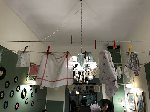 Read moreIl fatto che sia apparecchiato con piatti e bicchieri tutti diversi lo rende particolare e molto famigliare. Guardandosi attorno si scoprono tanti particolari che fanno capire la cura dei dettagli, che non a tutti possono piacere, ma e anche vero che il locale bello non deve essere necessariamente un locale moderno e minimalista.Noi abbiamo assaggiato un po di piatti diversi,buono l'antipasto con tanti assaggini, ottime le torte di verdure peccato per i cuculli che erano zuppi d'olio. I primi erano molto buoni (abbiamo mangiato ravioli al tocco ,trofie al pesto e gnocchi al tocco anzichè al pesto). Piacevoli anche i secondi. I dolci (torta della nonna, torta mela e cannella, tiramisù)ci sono piaciuti tutti a parte la crema del tiramisù che era un po lenta. L'unica nota davvero dolente a nostro avviso è stato quando ci hanno chiesto di alzarci. Mi spiego meglio, al momento della prenotazione mi hanno detto che c'era posto alle 19.30 perchè il tavolo doveva essere libero per le 22. Ho spiegato che non saremmo riusciti ad arrivare a quell'ora e ho chiesto se poteva andare bene per le 20, la ragazza mi ha detto che non c'era problema e che in 2 ore riuscivano tranquillamente a farci cenare. In ogni caso siamo arrivati alle 19.50, e alle 21.35 la cameriera ci fa "ragazzi vi faccio preparare il conto perché come sapete alle 22 ci serve il tavolo" (stavamo finendo il dolce, ci avevano già servito il caffè, ed avevamo chiesto 2 amari), dopo 5 minuti è tornata....ragazzi il conto è pronto alla cassa se vi volete accomodare...e dopo qualche minuto....se volete potete finire gli amari di la nell'altra sala. Si erano fatte le 21.40. E ci ha fatto alzare con l'amaro in mano, e io lo trovo un po scortese visto che c'erano ancora almeno 10 min di tempo. Mi dispiace perchè devo essere sincera, abbiamo mangiato cmq bene, e il personale fino a quel momento è stato molto gentile, anche al momento stesso della prenotazione. Capisco l'esigenza del tavolo...però così mi...