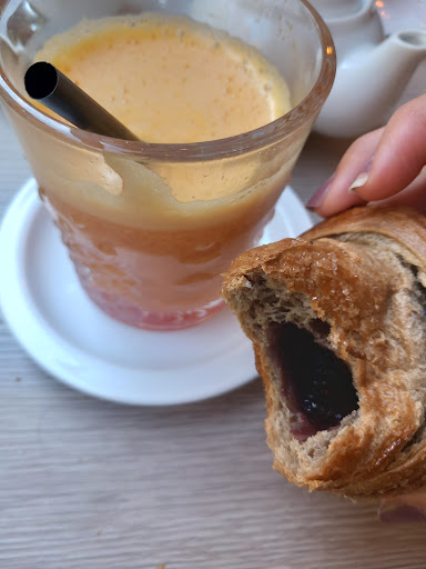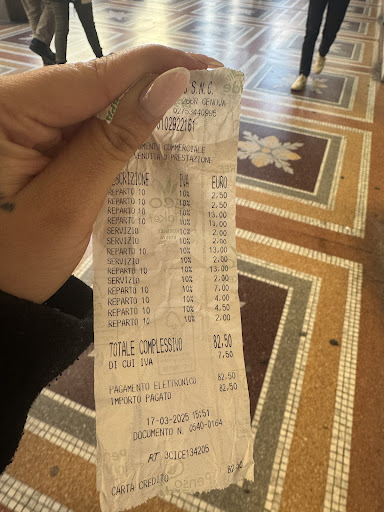 Read moreSiamo stati in questo bar durante un viaggio a Genova, avevamo l’hotel a pochi metri . Due adulti ed un bambino di 7 anni, ordino 1 caffe , 1 cappuccino, 1 latte caldo, 1 cornetto semplice , 1 cornetto con il miele. Per un bambino bere il latte e mangiare il cornetto al banco,molto più alto di lui ,è difficile, quindi ho preso tutto dal bancone e ci siamo messi seduti ad un tavolino dietro alla macchia del caffè . finita la colazione ho ripreso tazzine e bicchiere e le ho rimesse sul banco, il barista mi ha anche ringraziato! Alla cassa una signora bionda, dopo che le ho fatto l’elenco di quello che avevamo preso, mi chiede se eravamo stati seduti … ho risposto di si, ed inizia a battere il conto..totale 10,60 euro …. Sinceramente non mi sono messo a discutere o pagato e siamo usciti! La signora mi ha anche chiesto se nel latte caldo ci fosse stato anche il caffè …. Un bicchiere di latte 2 euro, se ci fosse stato anche il caffè … quanto lo avrei pagato? Almeno devo dire che era tutto buono …...