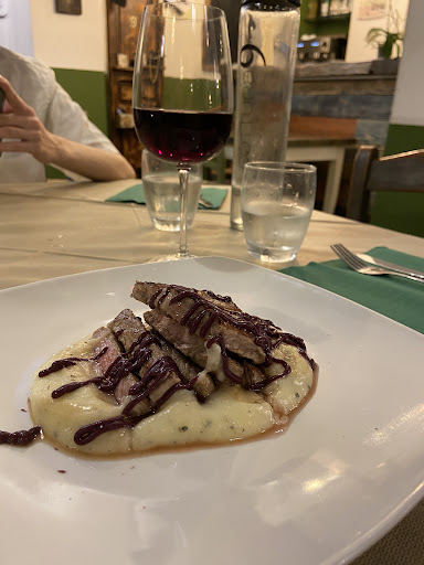 For first courses we had trofie with pesto and chestnut trofie with pesto and as second courses a sliced beef with rocket and parmesan and grilled vegetables. For dessert we shared a delicious cheesecake. Everything was good, only the cut, although very good, was a little tough and had a lot of nerves. Numerous welcoming, smiling, competent, friendly and helpful staff while the service was attentive and fast and the prices were right for the quality...