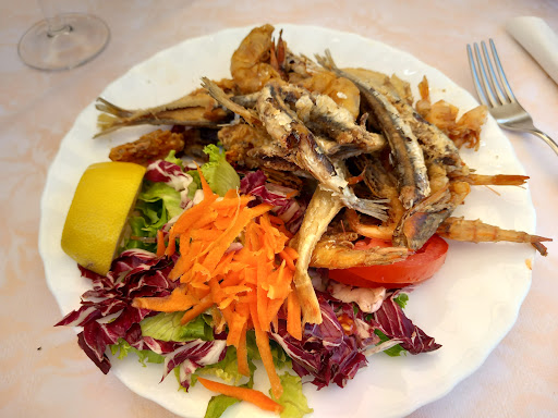 Read moreRisotto ai frutti di mare (in bianco) byonissimo, abbondante al punto di non aver bisogno di un secondo ma purtroppo parlo di 1 anno o due fa. Cortesia da parte di tutto lo staff. Siamo tornati volentieri e purtroppo non sono rimasta soddisfatta. Ogni volta che si chiede di poter occupar il tavolo ad angolo viene risposto da un giovane cameriere sbrigativo, che non si può perché potrebbe arrivare comitiva da 4 che puntualmente non arriva. Abbiamo dato fiducia ad oggi ma, purtroppo devo dire che è assolutamente incommentabile e, mai più! Soprattutto x il cibo e la cosa è grave. Dispiaciuta ma non ripeterò errore madornale. Esperienza terribile, mai più. Cibo incommentabile. Risotto scotto e pregno di burro (niente a che vedere con riso allo scoglio). Risotto al burro scotto e pasticciato ricoperto di frutti di mare sfatti, vecchi e orrendi solo a guardarli, immangiabile. Precedentemente ci è stato servito (a nostra insaputa), un piatto di tentacoli di polpo impanato, fritto e cosparso di salsa tipo yogurt, orribile e soprattutto non richiesto, solo x far passare l'attesa tremenda di circa 45 minuti x un riso al burro scotto. Bastava dire che nn sapevano fare il riso e noi avremmo ordinato altro, invece la sincerità nn li ha pagati, anzi. Siamo andati via delusi, abbastanza arrabiati soprattutto perché non usciamo spesso e quando lo facciamo speriamo essere trattati almeno correttamente, bastava dirlo. Mai più...