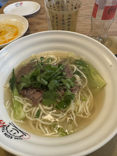 Cibo: piatti tradizionali cinesi che non si trovano in altri locali Cinesi a Genova(o almeno quelli che ho frequentato io). Porzioni ‘giuste’ e non abbondanti come i concorrenti. Come antipasto ho preso i ravioli ai ferri con carne e verza. Vengono presentati con chiusura a ‘involtino’ rispetto a ‘sacchetto’. Buoni ma non eccezionali: avrei preferito un po’ più ripieno e pasta più sottile, piuttosto riducendo la quantità di involtini( sono 10 a porzione) Prezzo doppio rispetto ai concorrenti ma sono anche il doppio circa di quantità per cui si sta. A seguire ho preso ‘Antica Beijing noodles con ragù di salsa di soia e verdure’. Mi portano dei noodles con ragù e verdure a parte da mischiare. Piatto molto saporito le verdurine aggiungono freschezza e croccantezza al piatto. Buono e sicuramente diverso a ciò che si trova in giro a Genova. Ho apprezzato che la carne usata sia pancetta di maiale, taglio di carne più aderente alla tradizione cinese rispetto ad altri tagli più magri (in oriente la cucina tende ad usare di più i tagli grassi del maiale). Porzione adeguata: sicuramente NON abbondante. Dopo ho provato ‘spaghetti cinesi in brodo di manzo’. Brodo molto buono in cui si sente molto bene il manzo usato per farlo. Pasta onesta. Carne un po’ dura. Verdura cinese bollita inutile. ATTENZIONE: brodo + cipollotti + coriandolo(prezzemolo cinese) possono creare dipendenza a chi piace :) Spesa 36,5 con acqua microfiltrata e coca zero.