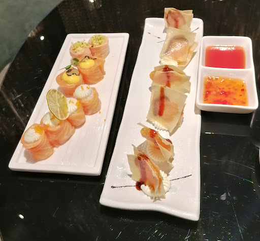 SERATA DI SAN VALENTINO ROVINATA DA VOI. Avevo prenotato alle 9:30 per questioni lavorative ma una volta arrivati alle 9:25 abbiamo aspettato fino alle 10 per essere portati a un tavolo in un lato dellla sala non proprio in vista e fin qua oh vabbè ci sta. Ci sediamo, ordiniamo e non arriva nulla per 40 minuti finche una ragazza italiana nello staff(l'unica saggia) ricorda ai suoi colleghi della nostra esistenza e ci viene portato qualche piatto e di nuovo nulla per unaltra mezz'oretta. Dopo poco se ne accorge il capo (lo sembrava dai vestiti e i modi di fare) che ricorda nuovamente il tutto ai colleghi del servizio e ci vengono portati ogni tanto i piatti come è giusto che sia. Il sushi lo avrei chiamato più colla per piastrelle dato che rimaneva lì sul bancone della cucina per decine e decine di minuti facendolo diventare un mattone mentre quello che arrivava subito si rompeva che ti serviva un cucchiaio per mangiarlo. Onestamente non ho voluto avvisare il ragazzo alla cassa (cosa forse sbagliata) di tutto quello che è successo per non rovinarmi ancora di più la serata però avere un servizio del genere non vale sicuramente i 30€ a persona che si spendono la sera. Sia chiaro io so cosa ci sia dietro ma in quella sera si vedeva proprio che non li portavano solo a noi e altri due tavoli nello stesso punto. PRENDETE PIÙ CAMERIERI...