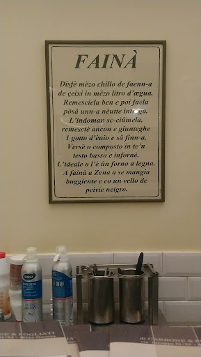Read moreDopo anni di conferme, non ho dubbi nel dire che qui si mangia la farinata migliore di Genova e dintorni. Non tornavo qui da prima del covid, ma la qualità non è cambiata. Ho assaggiato tutte i tipi di farinata proposti (peccato che siano meno rispetto al passato, non ho trovato quelle "stagionali" che comprendevano - ovviamente in base alla stagione - carciofi, baccalà, asparagi e funghi porcini). Si può ordinare la teglia di farinata (indicativamente 4 porzioni, ma è talmente buona che non sarà sufficiente) e scegliere fino a 4 condimenti diversi. Oltre alla classica, c'è quella con cipolle (assolutamente la migliore), con lo stracchino, con la salsiccia e con gorgonzola. La cottura è perfetta, non è asciutta ma nemmeno troppo unta, croccante ma morbida. A regola d'arte. Altri commensali hanno assaggiato la pizza e anche quella è molto buona. I dolci concludono degnamente il pasto. La spesa è nella media, ma la qualità è la bontà battono tutta la concorrenza. Il personale gentile e simpatico, sempre attenti...