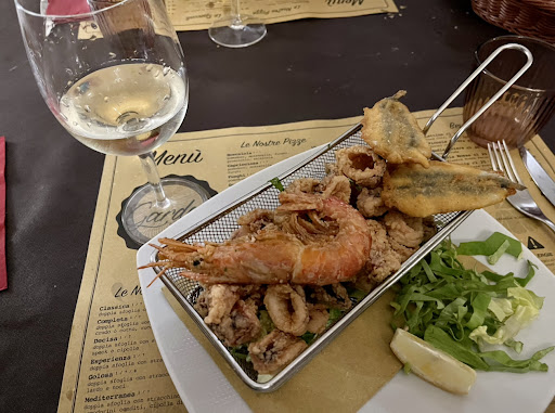 Read moreSerata con amici. Optiamo per il Garden dato che il lunedì sera è un'impresa trovare un locale aperto. Ci convince anche la location con il giardino sul retro e così prenotiamo. Prendiamo un mix tra piatti e pizza. La pizza buona...piatti di pesce medi, porzioni scarse (almeno per la calamarata). Purtroppo il giardino, molto bello, è però molto buio, sarà anche molto romantico, ma è piacevole vedere cosa c'è nel piatto! E' stato un po' difficoltoso aprire il pesce e sgusciare le vongole praticamente al buio! Norme anti Covid rispettate in parte, tavoli abbastanza distanziati, la maggior parte del personale indossava la mascherina, ovviamente però il cameriere al nostro tavolo (il più "anziano", molto gentile) l'aveva, ma abbassata! Inoltre, il menù (tavoletta con menu giornaliero) gira per i tavoli...quindi! Note dolenti: avevamo la torta, poiché era una festa a sorpresa, sarebbe dovuta essere Appunto! una sorpresa, mentre, ad un certo punto, si è presentato il cameriere con la torta in mano chiedendo per chi era! Figuraccia! verso fine cena ci sono stati tolti tutti i bicchieri, ancora pieni, inclusa la caraffa di vino! Anche no! ed alla peggio, si chiede! Ok, che erano quasi in chiusura, erano circa le 23,20/23,30 e la chiusura è a mezzanotte, però non si fa capire così al cliente, affrettando il servizio, togliendo il bere dai tavoli, correndo da una parte all'altra...ecc.ecc...ci state per chiudere dentro...ok!, ce ne andiamo! Per quanto riguarda i prezzi, direi nella media, piatti tra gli 11 ed i 20, le pizze tra i 7 ed i 15...Per il conto, arriviamo alla cassa, gentili dato che ci hanno permesso di pagare tutti separatamente con bancomat e contanti. Tutto sommato, è stata una serata piacevole, pizza ok, piatti da migliorare, consiglio un po' più abbondanti, prezzo...