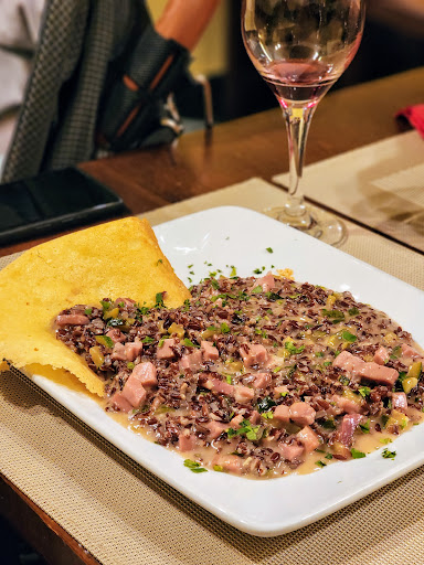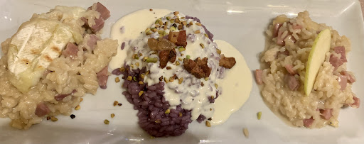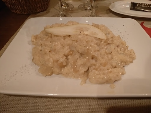Read moreRisotteria in zona Porto Antico, alcuni amici decidono di prenotare lì per una cena. Mentre stavamo ordinando, la cameriera ci segnala che servono al massimo 4 risotti diversi allo stesso tavolo, perché altrimenti i commensali non mangiano contemporaneamente. Penso che le limitazioni andrebbero segnalate in maniera più che evidente sul menù e comunque spiegate all'arrivo dei clienti. Mi pare assurdo che una risotteria non sia attrezzata per preparare più tipi di risotto allo stesso tavolo, anche perché vengono proposti circa 10 tipi di risotto, non centinaia... Alla fine non ho ordinato il piatto che avrei desiderato e non mi ha convinto granché il gusto (risotto tomino e crudo). Porzione abbondante, ma prezzo a mio parere eccessivo, gran parte dei primi costa 14€. Non ho provato altri piatti, per cui non mi pronuncio. Non...
