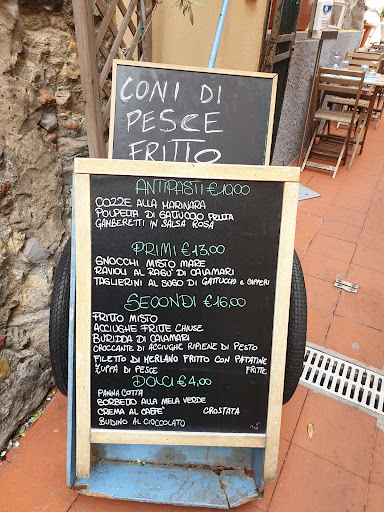 B and B host recommended this place for. Birthday celebration. I realize I am a guest in the country and utilize google translate a great number of times. Menus would not translate as it is written in chalk, one waiter for whole place , no English. Appetizer of muscles was large but cold, we were one of 6 in the restaurant at the time so busy cooks don't cut it. First and second courses were also warm ish. Main dishes five scampi, and that's it, enough meat in the tails for a five year old. Fish fillet was two inches in length and some deep fried potatoes. Many locals showed up and their food looked amazing . This place took advantage of us being tourists and after €105 , if back at home would have spoken to the manager and complained . We have been in Italy for 10 days and by far this was our first and only disappointment. Lots of dinning places around, avoid this...