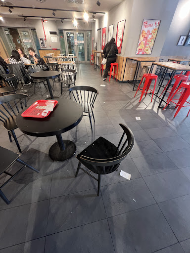 Very dirty and inorganized.. yesterday we had lunch there because we came back from other city.. but most of tables were left dirty, even by looking at the chairs you will realize how dirty is there. the toilet was teribble.. I preffered to not use it and even not wash my hands there, but just used my hygiene gel.. the atmosphere doesn't seems very nice and not recommend for family.. it is not my first time there, it has always been like this, but definitely would be the last time... low number of staff and not organized at all. It's a shame for KFC brand.. better to close it rather than lower...