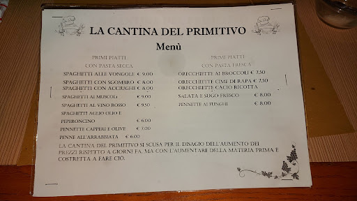 Read morePranzato il 31 con dei colleghi,ho avuto modo di gustare nuovamente i plurirecensiti Spaghetti al Vino rosso,che non hanno tradito le mie aspettative,per non farmi mancare nulla ho fatto il bis con gli spaghetti alle Acciughe, veramente squisiti!Ingolosito da cotanta delizia ho concesso il tris,e qui ho scoperto qualcosa di eccezionale: Spaghetti Allo Sgombro,sono un patito dei "primi" ma una delizia come questa mi mancava! Complimenti ad Antonio ed al suo Staff;Dimenticavo di menzionare i Vini, Antonio ci ha proposto un Primitivo da urlo, semplicemente perfetto! Prezzo onestissimo, ambiente suggestivo, servizio impeccabile.Grazie alla Cantina del Primitivo per la...