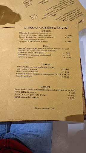 Read moreThis was memorable for the great food and wonderful service! The waiter brought our spaghetti to the table and it was the perfect dish! He and the chef were warm and cheerful and made us feel like family! We returned the next day for dinner. The mural on the wall depicting Genoa is beautiful, as is the architecture of this historic place. Thank...