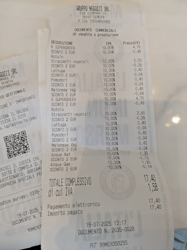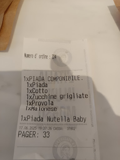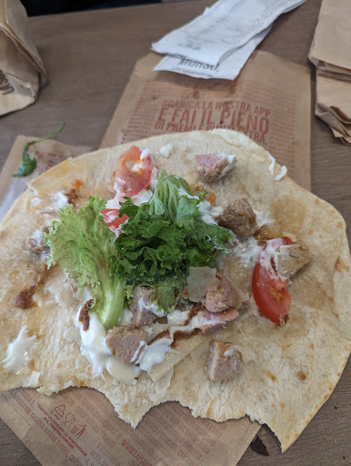 Read morePremetto che le piadine sono buonissime peccato che però sono vuote. La mia era un rotolo e come si vede dalla foto, solamente finita la piadina ho trovato uno "sputo" di maionese. Tra l altro mangiarla senza è davvero asciutta e si fatica a mandarla giù. Ho già fatto la segnalazione tramite email!! E avevo fatto già una segnalazione un anno fa sempre per lo stesso motivo, perche sono vuote(prendo sempre e solo questa piadina mentre chi è con me varia ma comunque sono vuote lo stesso). Direi che a distanza di un anno la situazione non è migliorata anzi. Le piadine sono care come l oro e per quello che poi c'è dentro, cioè niente è un furto. Sinceramente mi sono stufata di spendere soldi e mangiare cosi, vi ho dato tantissime chance ma purtroppo ogni volta è sempre uguale. Aggiungo che, c'è sempre coda in cassa infatti ordino dall app, ma comunque anche questa volta che non ho ordinando dall app ho atteso ben 40 minuti!!!!!! Oramai avevo pagato ma fossi stata altrove mi sarei alzata per andarmene. Può capitare una volta, due ma è una costante. E leggendo le recensioni direi che è un problema riscontrato da tanti. Tempo fa ero andata nel punto vendita di Genova de Ferrari e lì le piadine erano piene e senza attesa. Bisogna...