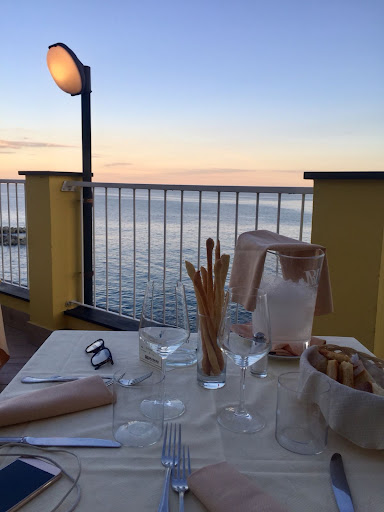 I went to this place with a real Genoese who lives in the neighborhood and heard some positive opinions about a place. The food is very tasty - bravo/ brava for the Chef. It's made of local, fresh ingredients according to traditional recipes, and it was very tasty. We ate Cappon Magro, marinated acciughe, frito misto and spaghetti con vongole e bottarga - all delicious. The restaurant is located at the cost of Ligurian sea - there is a spacious terrace with a beautiful view over the sea, decorated with flowers. They have a decent selection of wine, many local producers (great!), but prices are a bit exaggerated in comparison to the market prices (even if we take into consideration a margin of a restaurant). So, why our evaluation is not the highest one? We were a bit confused with the image of a restaurant (elegant interior, waiters in white shirts, black trousers and long black aprons) and the service quality - we felt as being in the fast food. The waiter came to us three times in about 10 minutes when we were thinking about what to choose, then the same was with wine selection. We are not the laggards or indecisive people - but being in a restaurant we expect to have 15 minutes to take a decision without asking us the same question 3 times "are you ready to order"... The next thing is that taking into consideration the price of food, the presentation of dishes might be a bit better - right now, it is in a rustic style. The man who came to me to add botarga to my dish (a very nice and friendly one) was dressed in a regular tired polo, different style than the rest of the team. Conclusion: we were satisfied, but we have a feeling that the owners of the restaurant don't know exactly which way to go - an elegant restaurant with high cuisine and prices, and service who is trained according to such standard, or a local, friendly trattoria where you drop to, eat fast and go. One foot cannot stand in two boats.