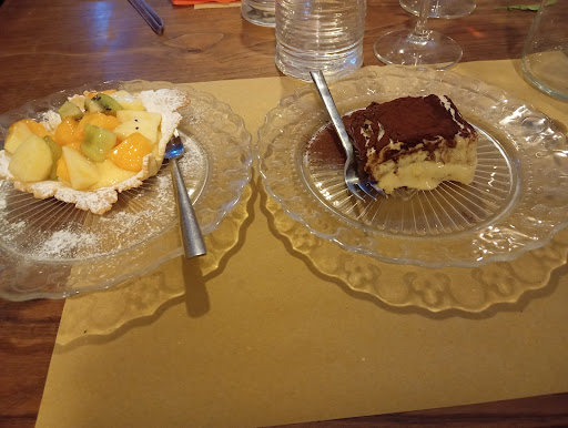 Read moreUn posto che mi ha sorpreso a pochi minuti da Genova Corso Europa... Un posto fiabesco che appartiene a un altro tempo, che, però, fa ancora parte di noi. Cosa ho apprezzato maggiormente sono stati il posto in sé e per sé, il servizio caloroso, gentile e sorridente e la scelta dei vini che non era per niente banale. Riguardo al cibo: tutto buono, ma senza sorprese, anche perché è la nostra cucina ligure. I primi sono abbondanti: secondo me il pesto, che, per carità , è artigianale, andrebbe caricato di più pinoli e forse con una nota di aglio più accentuata risulterebbe migliore, forse per ragioni di adattamento al cliente, l'aglio non viene messo, cosa che ormai accomuna tanti ristoratori. Dei funghi ne avrei fatto a meno, invece un piatto degno di nota è la guancetta: tenerissima e saporita. Sui dolci consiglio il guscio di pasta frolla ripieno di crema e frutta; io, per il Tiramisù, avrei usato un altro tipo di biscotti, quindi non l'ho molto apprezzato. Detto questo lo consiglio e ci tornerei anche domani per il ragù di lepre. È un posto che mi ha dato l'impressione di essere specializzato...