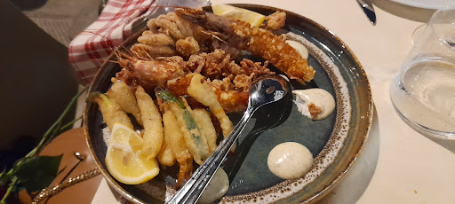 SUPERLATIVO! Le Vecchie Mura ti accoglie in una cornice fortemente genovese, Il Porto Antico. Nel suo dehor puoi godere delle mille luci che circondano il porto, e della magia che si crea al tramonto. Il servizio è molto piacevole e fluido, i ragazzi sono professionali, accoglienti e dal sorriso autentico. Abbiamo ordinato acciughe fritte come antipasto, paccheri al sugo di mare e un fritto misto in due (ma la scelta è stata sofferta perché il menù è invitante già solo nella accurata descrizione dei piatti e non manca l'adorato pesto!). Acciughe che non sono le solite acciughe fritte. E già da qui hai la percezione dell'accuratezza. Il primo ci ha dato la conferma: paccheri cotti magistralmente al dente. La pasta la senti in tutta la sua consistenza e non è seconda al sugo (cosa rara). Condimento ricco di pesce e dal colore scuro come i sughi che ti vogliono raccontare una storia. Fritto di pesce squisito, con bocconcini croccanti ma morbidi, anche con verdure, sempre fritte, da affondare in due noci di maionese, per divertire il palato. Il tocco "wow" è il gamberone già privo di carapace, da gustare senza sporcarsi le mani! Piatti ricchi che risultano incredibilmente...