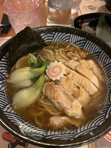 Read moreCi siamo presentati un sabato sera in tre, purtroppo senza aver prenotato tentando la fortuna. Il ragazzo all'accoglienza e una delle cameriere sono stati gentilissimi trovandoci un posto al bancone che per noi andava più che bene! Il locale è arredato in stile manga/anime, è un ottimo posto per i fan del genere! Per accedervi bisogna salire due rampe di scale per arrivare in una sala molto accogliente e che fa sentire subito "a casa". Il servizio è stato fantastico, la cameriera ci ha consigliato sui piatti più richiesti e sul loro grado di piccantezza, inoltre la rapidità mi ha lasciato senza parole! Nel giro di veramente cinque minuti di orologio eravamo tutti e tre con la nostra bella ciotola di ramen davanti agli occhi, pronte a essere degustate. Personalmente ho scelto il classico tonkatsu ramen, al cui interno c'è carne di maiale, mais, uovo marinato, naruto e brodo di carne. Mi è piaciuto moltissimo, sono rimasto soddisfattissimo e la carne era molto tenera. Ho preso anche due onigiri chicken spicy, al cui interno come si può dedurre dal nome c'è carne di pollo e all'esterno polvere di peperoncino che secondo il mio parere non è eccessivamente piccante al punto di dar fastidio, anzi! Ho trovato che desse quel sapore di piccante "buono" che risalta anche gli altri sapori, inoltre i due onigiri erano veramente giganti! Con una ciotola di ramen e i due onigiri ero sazio senza arrivare al punto di scoppiare. Dopo un caffè siamo andati alla cassa e il prezzo ci è sembrato veramente onesto considerando l'esperienza nel totale, la qualità del cibo e il servizio eccellente! Ci avete fatto passare un'ottima cena,...