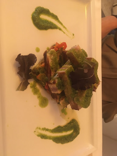 Read morePosto accogliente e intimo, si mangia bene e con molta tranquillità. È molto rilassante Siamo stati accolti da una ragazza molto gentile e cortese che ci ha accompagnato al tavolo e offerto delle bruschette di benvenuto (davvero ottime) Il locale è pulito ed ordinato ma la cosa più bella è che si vede la cucina e lo chef mentre cucina. La cucina è molto molto pulita e ordinata Insieme allo chef c'è anche una ragazza che aiuta nella preparazione dei piatti, entrambi sono molto professionali e precisi. Anche in cucina si percepisce un clima di tranquillità. Lo chef è molto bravo a cucinare il pesce infatti era tutto cotto alla perfezione e non gommoso. Tutto viene preparato al momento. Abbiamo ordinato dei ravioli con il ragù di pesce molto buoni erano molto delicati e dei tagliolini al nero di seppia con i frutti di mare. Questo piatto era davvero divino, c'era tanto pesce nel piatto il gusto era deciso e intenso il tutto era molto cremoso e abbondante. Come secondo abbiamo ordinato lo stoccafisso con patate olive taggiasche e pinoli molto buono e un tortino di spinaci gamberetti che in realtà era un antipasto ma lo abbiamo mangiato come secondo, era molto saporito ed equilibrato la salsa (di crostacei e zafferano) era molto molto buona. Come dolci abbiamo preso una sfera con cioccolato fondente con mousse di pistacchio e frutti rossi ottima Una cialda di nocciola con zabaione anche questa buona Il complesso è veramente...