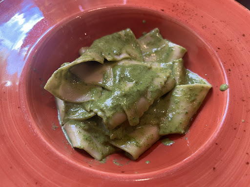 Menù 8 il ristorante propone i piatti tipici della tradizione Genovese, un buon menù di mare e una fantastica selezione di vini tra cui scegliere, per gli amanti del vino è un ottimo locale! Il menù non è tanto vasto, quindi pochi piatti ma buoni!! Per la nostra serata abbiamo scelto un antipasto di verdure fritte, dei ravioli di borragine al tocco, delle ottime polpette di acciughe, e per finire degli ottimi tagliolini al verde con ragù di polpo. Come dolce della casa una fantastica millefoglie con crema pasticcera e lamponi. Forse come presentazione dei piatti ci sarebbe un pochino da lavorare, non a livello del locale, però sul gusto e sulle porzioni nulla da dire, piatti eseguiti molto bene e soprattutto molto buoni! Piatto raccomandato i tagliolini al verde con ragù di polpo.
