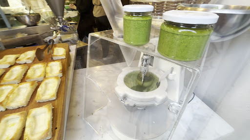 Il negozio Ăš famoso per il suo pesto genovese di alta qualitĂ , fatto con gli ingredienti tradizionali e il basilico fresco coltivato nella regione ligure. Il pesto era ricco e aromatico, con un equilibrio perfetto di aglio, basilico, pinoli, olio d'oliva e formaggio parmigiano. Inoltre, ci hanno consigliato di abbinarlo con la focaccia genovese, combinazione perfetta!