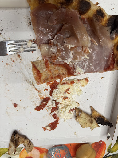 Partiamo dal “culatello”: chiamarlo così è un insulto al salume vero. Era un prosciutto qualunque, salatissimo, stoppaccioso, buttato sopra a fine cottura come se fosse un avanzo di frigo. La burrata? Secca, sbriciolata, triste, priva di qualsiasi traccia di cremosità. Non c’era nulla di fresco, nulla di buono, nulla di burrata. Il pomodoro? Crudo, acido e buttato a caso, giusto per sporcare la base e incollarsi al cartone. E la pizza in sé… crosta carbonizzata, impasto che sa di niente, ingredienti che scappano appena la apri. Un disastro visivo e gustativo.