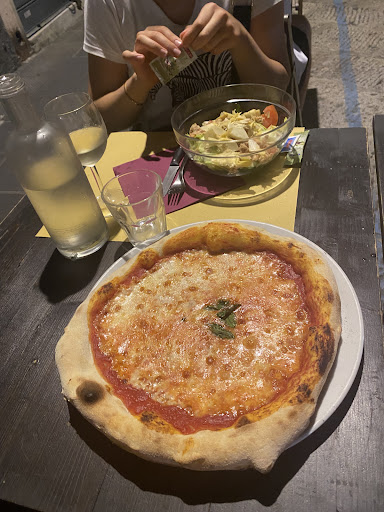 Read moreAbbiamo pranzato sabato dopo aver visitato l'acquario. Purtroppo l'esperienza è stata davvero pessima. Abbiamo ordinato un tagliere "tanta fame", i pansotti al sugo di noci, un calzone fritto e una pizza. Da bere dell'acqua microfiltrata e 2 coke. Il tagliere (servito su un piatto da pizza, giusto per far capire le dimensioni) comprendeva 4 fette di cotto 4 fette di crudo 8 fette sottili di salame e circa 6 strisce di formaggio tutto uguale (tipo formaggio non definibile, molle e insapore). L'idea degli affettati è che fossero confezionati e non freschi (cosa che ci si aspetta se si paga un tagliere 14 euro) I pansotti erano precotti Il calzone fritto era crudo e il sugo acido La pizza accettabile Oltre a questo aggiungo che il pane servito (sembrava focaccia) era vecchio e posso. Quindi immangiabile. Per il servizio poi ci sarebbe da fare un post a parte, partendo dal bagno (no comment per l'odore terrificante) ai piatti rotti, poi la bottiglia di acqua microfiltrata sbeccata e il tavolo appiccicoso perché non pulito. Quando ho chiamato ho chiesto se bisognava prenotare, il loro suggerimento era ovviamente di sì perché intorno alle 13 il locale si riempie. Al nostro arrivo forse c'erano 4 persone e quando siamo andati via forse erano 2... Ci siamo affidati alle recensioni precedenti che vantano un punteggio di 4.3 Mi chiedo a questo punto quanto siano concretamente veritiere. La cameriera non si è minimamente preoccupata di chiedere se era tutto ok, mentre la cassiera, una volta che abbiamo pagato, si è dimenticata una cosa semplicissima: salutare. Perché la buona educazione è sempre...