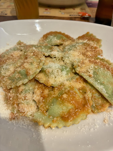 The ravioli are very tasty here, however, we couldn't help but notice that tourists and/or foreigners are not treated equally here. We came here at around 3 pm and the bartender told us that we could get food but only as take away, which is fine. Basically he told us that we could take our take away stuff (plastic boxes) outside and sit down at the tables, which we did. Fast forward a few minutes and we are beginning to notice that all the other people are served their food on plates. We, who also happened to be the only people that did not speak Italian, on the other hand had to eat out of plastic boxes.