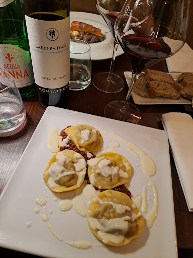 Read moreHo scelto di cenare in questa trattoria catturata dall'indirizzo in cui si trova: Vico delle Camelie. Appassionata d'opera fin da bambina, è stato un richiamo irresistibile. Sono andata a curiosare il sito, il menù proposto, la filosofia del locale ed è stato un attimo confermare la prenotazione per un sabato sera romantico. Beh, ogni aspettativa è stata ampiamente ripagata. Fin dall'entrata ci si immerge in un'esperienza piacevole e rilassante, trasmessa dall'ambiente accogliente, molto pulito ed elegantemente soffuso, sebbene non perda la sua anima popolana. Musica d'ambiente mai invasiva che fa da piacevole sottofondo al servizio, discreto e con le giuste tempistiche, lasciando comunque la scena, in maniera mai invasiva, ma saggiamente dosata, al proprietario Maurizio che, nel suo elegante completo da somellier, ti racconta il viaggio tra il menù e la carta dei vini con gesti e dialoghi pacati e sapienti. Ogni piatto è stato un viaggio nella Genova dei ricordi con sapiente maestria di esecuzione e presentazione, condite da un pizzico di innovazione che contribuisce alla valorizzazione della materia prima di ottima qualità. Abbiamo scelto Cappon Magro e U tuccu a-a revèrsa che ci hanno incantato (dovete assolutamente provarli entrambi, sono divini!!!) proseguendo poi coi calamaretti ripieni di se stessi, un piatto che definirei una nuvola per morbidezza, di intenso sapore delicato. I dolci!!!! Mamma mia i dolci!!! Crema Maurizio tutta la vita, me ne sono letteralmente innamorata, ma anche il tiramisù era sublime! Ci ritorneremo sicuramente per provare le altre pietanze del menù e le proposte nuove che sono certa seguiranno le stagioni. Complimenti davvero a...