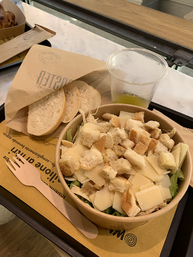 Read moreSiamo stati con mia moglie a pranzo in questo catena di pollo con due ristorante rosticcerie a Genova precisamente in pieno centro in Via Fiasella che dispone di diversi tavoli alti interni con sgabelli e anche all’aperto con vista sulla via. Non fanno servizio al tavolo si ordina si oaga ed il personale ti dà un apparecchio che suona quando ordine è pronto. Ci siamo seduti in un bancone alto interno e abbiamo ordinato un panino Zena con pollo Campese allo spiedo, pesto e prescinseua accompagnato con una grande quantità di patatine fritte mentre mia moglie ha preso insalata contadina sempre con pollo Campese allo spiedo, insalata, uovo sodo, pomodorini, olive taggiasche e cipolla. Niente da dire sul mangiare buono abbondante squisito ma il servizio è stato lentissimo abbiamo aspettato tanto. Il personale troppo poco personale è stato accogliente sorridente competente cordiale e prezzi buoni!!