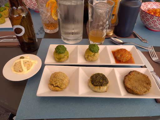 Read moreQualità, cortesia, accoglienza. Arriviamo e veniamo immediatamente accolti con calore e cortesie sincere: "Benvenuti" è una parola che pare dimenticata, ma che fa davvero bene. Ci sediamo e ordiniamo. Il gestore è simpatico, cortese, disponibile, ma mai invadente, quindi il servizio (perfetto) ci dispone nell'animo migliore. Ordiniamo le polpette: io un misto di mare, mia moglie un misto di terra e mia figlia polpette di carne con patate. Rimaniamo assolutamente estasiati dai sapori, tanto che mia figlia mi ha chiesto se per caso non fosse una catena, per poter trovare un altro locale uguale vicino a dove abitiamo... ma non ce ne sono di locali uguali. Le polpette sono gustosissime e delicatissime, si sente al palato che sono fatte con amore e sapienza. Io e mia figlia terminiamo con un dolce (a testa), anch'esso delizioso: un flan al cioccolato con pera e una crema portoghese. No, ma detto così non rende l'idea. Una vera delizia anche quello. La cena è il giusto: non appesantisce, ma sazia. Il prezzo, in rapporto all'offerta, è decisamente adeguato, anche tenendo conto del fatto che io e mia moglie abbiamo scelto le portate più care del menu. Le scelte sono davvero tante e i menu vegetariani e vegani sono chiaramente evidenziati (e svariati: non ce n'è solo uno giusto per accontentare). Quindi, anche chi ha esigenze particolari è accontentato. Purtroppo ha un difetto: che sta a Genova, e noi in provincia di Pavia. Quindi dovremo tornare a Genova: sicuramente per rivedere la città, splendida, ma anche, non ultimo, per tornare a visitare questo locale, dove si mangia bene, ci si sazia ma non si esplode. Nel nugolo di offerte di cibi a basso costo e bassa qualità, la scelta di mangiare e gustare invece di rimpinzarsi mi pare una delle più sensate. E non è che io sia precisamente un omarino, coi miei quasi...