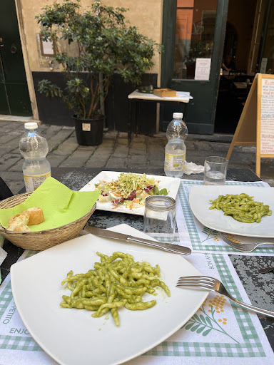 Read moreNon posso valutare la cucina, ma la pizza non è buona. La pasta è nella media. Il pomodoro (giusta acidità ) e l'olio ottimi. Ma i salumi no: mia moglie ed io abbiamo preso una piza col crudo ed una con lo speck, ed entrambi erano cattivi, in particolare il crudo: nÊ Parma nÊ San Daniele ma neanche un decente toscano, tutto fuorchÊ crudo (una specie di coppa secca e tendente al rancido). Si possono infinocchiare i turisti stranieri, a spasso per il centro, che non hanno idea di che cosa mangiano, ma ci vorrebbe un po' di vergogna ogni tanto. Oltretutto cara: ridicoli i 2 euro di coperto (li capisco se c'è tovaglia e tovagliolo da lavare ma non con tovaglietta e tovagliolo di carta). Dulcis in fundo: ho trovato nella mia pizza 2 ganci (!) di ferro, perf fortuna li ho visti prima di metterli in bocca: sarebbe bastato quello per fare casino e denunciarli, ma essendo con mia moglie ho fatto finta di niente e li ho infilati sotto il piatto. Infine il bagno: sporco. Ed erano le 19.30, inizio serata, quindi non ci erano passati molti clienti...