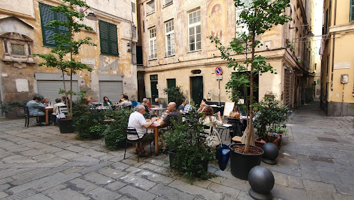 Non capisco come certi locali vantano fama di ristoranti. Premetto che avrei potuto esprimere il mio parere direttamente,o alla ragazza che serviva i tavoli, oppure al titolare, ma sinceramente visto che eravamo due coppie di amici, ho preferito pagare in silenzio, per un servizio pessimo, scadente, e di cattiva qualita'. Arriviamo in questo locale all'apparenza carino, incuriositi da un menu' in bacheca esterna, da nouvelle cousine, menu' da 17 euro: 2 piatti a scelta caffe' e acqua. Visto che non c'era posto al piano ci fanno accomodare nel fondo(penso che siano le vecchie cisterne/pozzi di genova antica) scendendo le scale noto pavimento scivoloso un po' per l'umidita', e forse per la poca pulizia. Tavolino da trattoria in marmo, la ragazza che viene per prendere le comande, corre da tutte le parti dicendo che e' da sola a servire,(pur non essendoci tanta gente). Viene a prendere le comande, portandoci una cestellino di pane raffermo, ordiniamo la prima portata 1 risotto asparagi orata e limone grattuggiato 3 di baccala' fritto -da bere 1 di acqua naturale e 1 frizzante. Nell'attesa salgo al piano di sopra per andare al servizio, noto ragnatele a soffitto e dopo essermi lavato le mani mi asciugo con carta che sembra quella delle F.S. AiaiaiaI... inizio ad avere i miei dubbi ma ormai siamo li'. Arrivano le bevande, due acque naturali in bottiglietta di plastica, da mezzo litro tipo mensa, e 1 da 1 litro Nel mentre arrivano le portate risotto bollito dall'aspetto sgradevole e dal sapore di niente; 4 frittelle a forma di polpette con baccala all'interno pieno d'acqua e sbollentato, fritte a mio parere in padella (vista la forma) con un fondo d'insalata mista dal colore scuro. Beh... dai puo' capitare, aspettiamo la seconda portata 2 risotti asparagi e orata, polpette di gallinella, e tonno in agrodolce. Ovviamente i risotti erano un po piu' asciutti(mantecati), ma sempre riso bollito era, le 3 polpette di gallinella avevano un aspetto sgradevole e sapore 0, il tonno in agrodolce, stopposo, annegato nel vino, con verdure crude. Quando siamo saliti, delusi dalla qualita' del cibo, attendendo di pagare noto la cucina da fuori con un unico cuoco, con pentoloni, come si dice in gergo dal culo nero, padelle ammucchiate, senza un bollitore, senza una friggitrice, e da li capisco che se entra Antonino Cannavacciuolo, altro che pacca sulla spalla gli da'. Comunque Paghiamo e' esco senza salutare, pensando ma gestire un ristorante e' una passione e un arte, l'ordine e la pulizia e un dovere. Ci vuole cosi' tanto a dare un buon servizio. Beh ovviamente 1 stella (scadente) e gia...