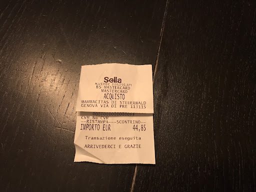 The negligence exhibited by the owner has not only left a negative impression of the restaurant, but also reflects what seems to be the two-faced nature of her character- approaching our table at the end of our meal with vibrant conversation, but yet presenting us with an ambiguous receipt; people unfamiliar with Genoan restaurant practices, at...