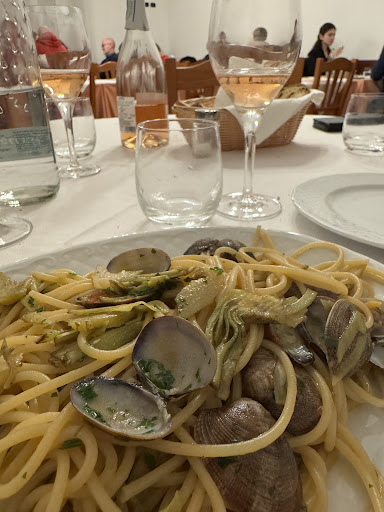 Read morePersonale, gentile locale pulito ma impersonale quasi banale primo di lasagnette ripiene scotte con un sugo di accompagnamento di pomodoro ed erbette che non centravono niente con risultato di gusto piatto, il secondo pesce alla ligure dove chiedo che me lo portino pulito perché se no non lo avrebbero fatto e che comunque anche se sfilettato era pieno si spine, mia moglie ha preso una rana pescatrice che se si chiudevano gli occhi non si sarebbe accorto che era pesce, in quanto privo di gusto anche nell'intingolo, i dolci una pastiera bollente (decongelata?) e una mousse al caffè con grumi e inconsistente, vino una bottiglia per una cifra di 101€. Ma perché non ci sono più le vecchie trattorie che facevano piatti anche semplici ma buoni con prezzi adeguati e poi cucinare un po' di mestiere ci vuole, l'ennesima...