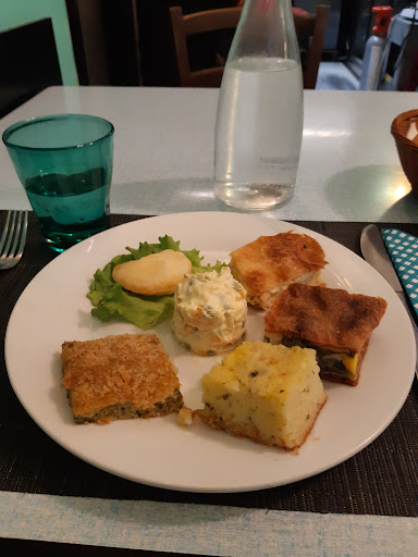 10€ for a very sad-looking and not tasty "Il Genovese" mixed starter that was missing the Russian salad that was indicated on the menu. When we asked where that was, they responded that they ran out and so they had replaced the salad with two mini foccacias as they usually only give one (those 2 things in the middle....that has GOT to be a joke). Husband ordered a pesto lasagna and we got something that didn't look at all like a lasagna unless that's how a pesto lasagna is supposed to look like? Ordered a mixed dried seafood but essentially not really a mix cause it was all just little pieces of calamari and one prawn. The only decent dish was the grilled squid and salad. I had the pansoti which was fine, but this was my second choice as they had run out of the pesto minestrone soup as well (we went after 14h00). If all the other places were closing, I would never...