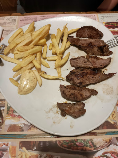 CIBO: il cibo di per se non è male, la qualità non è eccellente ma non ci si può lamentare in fondo rimane pur sempre una catena e devono standardizzare tutto. Io ho preso un panino mentre la mia amica una "tagliata" che assomigliava più ad una fettina secca ( le carni sono preconfezionate e già della grammatura specifica per ogni piatto) ... Lei la ha chiesta ben Cotta ma non ai livelli suola di scarpa, inoltre c'erano delle parti della carne verdastre... E poi era veramente poca come quantità e le patatine erano letteralmente contate.(allego foto, giuro che le patatine non erano state toccate ancora)