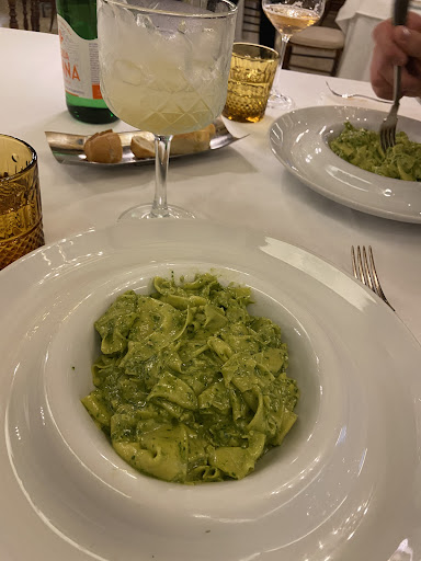 My brother and I ran into this restaurant after it started heavily raining. We had just arrived - weary and overwhelmed after travel - and there’s nothing quite like a delicious meal to reassure and soothe two nervous souls! I found this place by the good google reviews and it happened to be right beside where we were staying. Upon arrival, the place had an old-school, white-tablecloth feel about it bordering on dusty-antique, and it smelled heavily of cigarette smoke. The waiter was nice, got our drink order (limoncello spritz and a lager), and served us some focaccia while we looked over the menu. We looked at one another in slight disbelief at the prices and briefly wondered if it was better to make a run for it back into the rain, but the first bite of focaccia had been bitten, so we committed to staying and we both ordered the mandilli al pesto. The pasta was thin and soft with a classic pesto sauce that was really nice, but after several bites with no texture or chew, it started tasting mushy and slightly bland. Mix that with the lingering smell of cigarettes, and your meal becomes unappetizing. If this were a cafe where they were charging €12 for a bowl of pasta and a drink (which is possible in Italy!), I wouldn’t have bothered writing a harsh review; but after walking out of there €90 lighter, we felt robbed and still wet. Unfortunately, there seems to be many tourist traps that exist in Italy, and it can be disheartening when you find yourself in one… this experience felt like a tourist trap. And if it is not intended to be one, this restaurant needs to lower their prices or...
