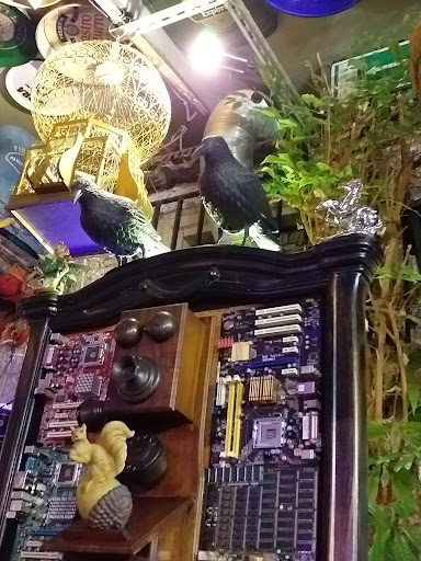 Siamo stati qui per la prima volta stasera e sono rimasta a bocca aperta...è un locale strano e meraviglioso. È composto da due sale e credo ce ne sia un'altra di sopra,perché ho visto delle scale..comunque tutto è arredato da...oggetti!!! Ce ne sono a migliaia di ogni genere ed epoca e tipo sistemati tra statue e libri in modo delizioso..tra piante,vassoi appesi al soffitto, il tutto in un'atmosfera calda e un po' misteriosa. Qui si servono pizza ,antipasti, secondi con stuzzichini e contorni. Noi abbiamo preso la pizza che è veramente eccezionale. Non viene preparata con farina 00 ma con farine integrali,di sesamo e di cereali vari e la composizione dell'impasto varia ogni settimana. Può essere condita con tutto ed è veramente ottima. Anche i supplì sono saporiti e filanti. Il proprietario è una persona deliziosa e sforna lui direttamente le pizze. Il servizio è veloce e il personale cordiale. Non ha un parcheggio definito ma è situato proprio su una strada principale e comunque vicino ai parcheggi pubblici. Prezzi buoni. Io lo consiglio vivamente anche solo per prendere una birra o scambiare un libro...si,si può fare anche questo ..andateci,non ve...