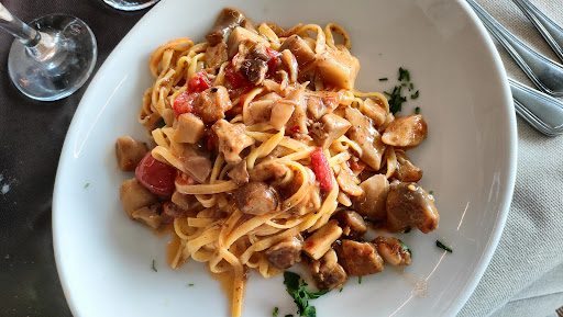 We recently dined at Trattoria da Tittò, a restaurant recommended by our family friends. The spot was charming, sitting right by a lake that fills a long-dormant volcano's crater. It was a sight to behold, especially as the sun was setting.