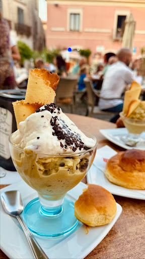 giorno 3. alle 19 capitiamo a questo bar. ci sediamo. dopo 30 minuti arriva il cameriere e gli chiediamo aperitivo. ci dice che andava prenotato. a quel punto mi altero per la presa in giro. alle 20, senza prenotazione, viene dato a loro "amici" l'aperitivo. vado per pagare le granite con bancomat (che viene visto male e per pagare devo insistere) e chiedere spiegazioni, ma non ottengo nulla.