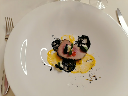Read morePranzo di compleanno in famiglia. Location molto curata ed elegante. Menù non con molta scelta e direi particolare. Antipasto panna cotta al nero di seppia gelatina al passion fruit tartare di gambero bianco sorbetto all arancia, per me troppo elaborato, si assaporava poco di tutto. Cannolo croccante di chianina maionese all ostrica giudicato buono. Primi spaghetti con crema di sedano rapa gamberi e bottarga ottimi cotti giusti e saporiti. Ravioli ripieni di parmigiana giudicati ottimi. Gnocchi di seppia neri insalata liquida nocciole tostate salsa all acciuga giudicati ottimi. Secondi polipo croccante, crudo di gamberi maionese al wasabi, praticamente polipo impanato, anche no il pesce meno elaborato meglio si gusta la panatura copre il sapore. Dolci tiramigiù non ci siamo molto pesante e poco di mio gusto. Fico ottimo. Comunque giudizio positivo, ma c'è ancora spazio...