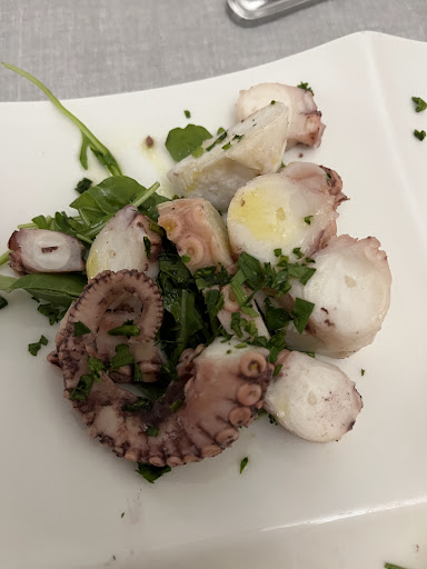 Read moreLocation discreta un po’ nascosta , parcheggio da chi cerca trova , accoglienza voto 10 , gentilezza cortesia e simpatia . Offre la casa Prosecco e frittelle alle alghe , ottimo , per provare piatto misto , con frittura di calamari e un gambero , troppo cotto e quindi duri , salmone , stranamente la fettina aveva ancora la pelle e il sapore non era eccellente , 4 gamberetti in salsa rosa e il polpo , ( sembrava più una piovra , ma mi sbaglierò ) freddo non condito e quindi in bocca non era al dente ma morbidi e passatemi il termine farinoso , quindi sono rimasto deluso , la pizza nell’Italia , impasto 10 , ingredienti 10 , ma nel complesso , non era esaltante , ( per gustare e restare una pizza avrei dovuto prendere una margherita o una Bufalina ✔️) forse troppo sapori uniti e accoppiati male , ma ripeto impasto , cottura e ingredienti 10 . Dolce ok . Prezzo giusto con sconticino alla cassa , coperto 2,5€ e acqua da 0,75 a 2,5€ .. (ormai si stanno adeguando tutti ) Musica di sottofondo con volume un po’ troppo alto x chi siede vicino . Da fastidio . Conclusione , forse avevo troppe aspettative avendo letto le recensioni.. quindi forse torneremo e ci riproviamo . Sottolineo , personale fantastico e tipica accoglienza...