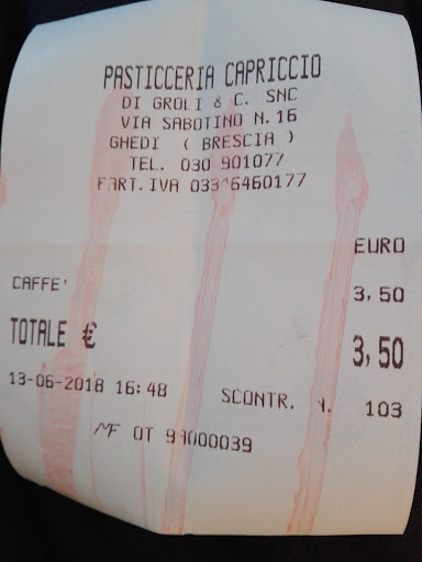 La pasticceria Capriccio di Ghedi, situata in provincia di Brescia, è stata una piacevole scoperta durante la nostra visita. Abbiamo deciso di fermarci per fare colazione e siamo rimasti estremamente soddisfatti dell'esperienza.